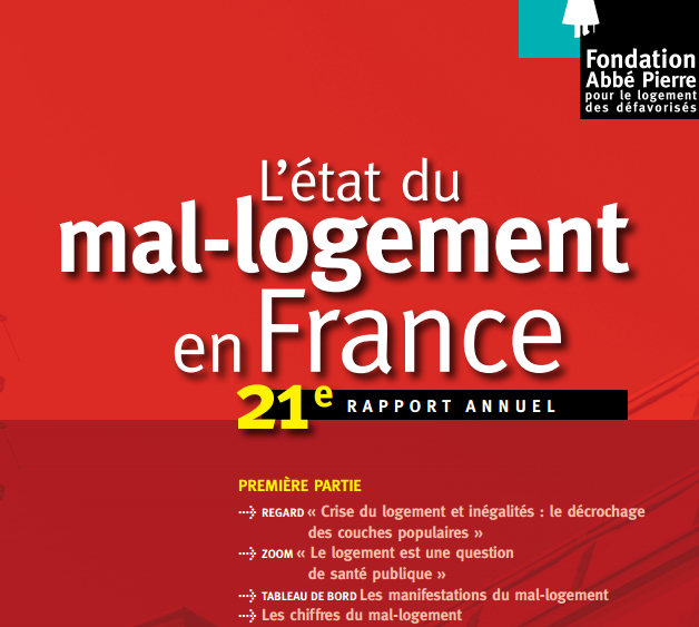 Je vous invite à prendre connaissance du 21ème rapport sur le mal-logement en France, édité tout récemment, par la fondation Abbé Pierre.