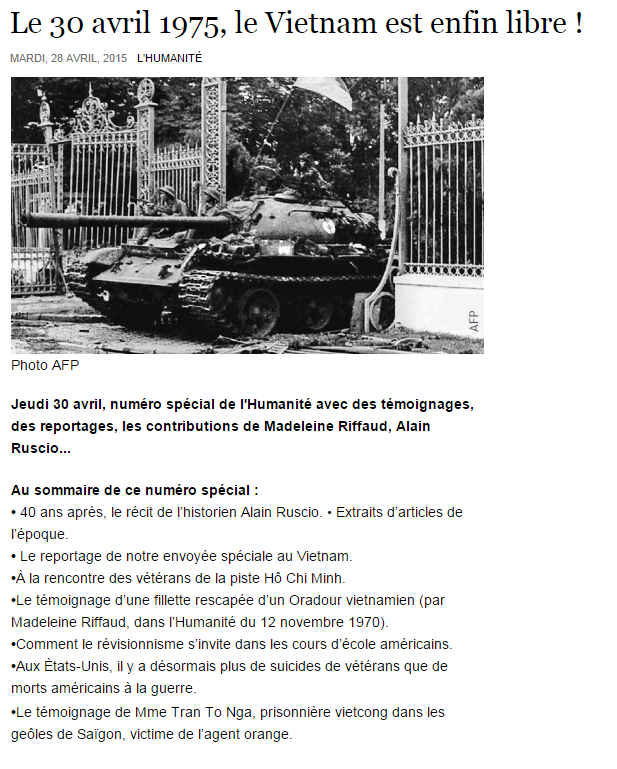 Actualités Le 30 avril 1975, le Vietnam enfin libre ! Navigation de l’article arrow-leftArticle précédentPrécédent31 % : c’est l’écart de salaire, sur toute une vie, entre les hommes et les femmes en France. En Allemagne, il s’élève même à 49 %arrow-rightNext PostSuivant3 arrêtés pour le droit à une vie digne !